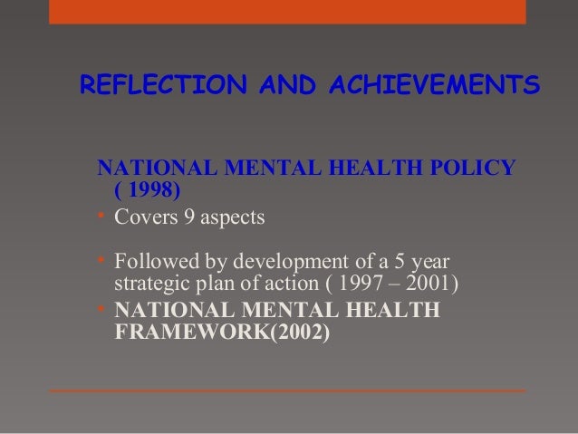Future direction • mental health services for specific target population • home care for mentally ill • development of appropriate services.
