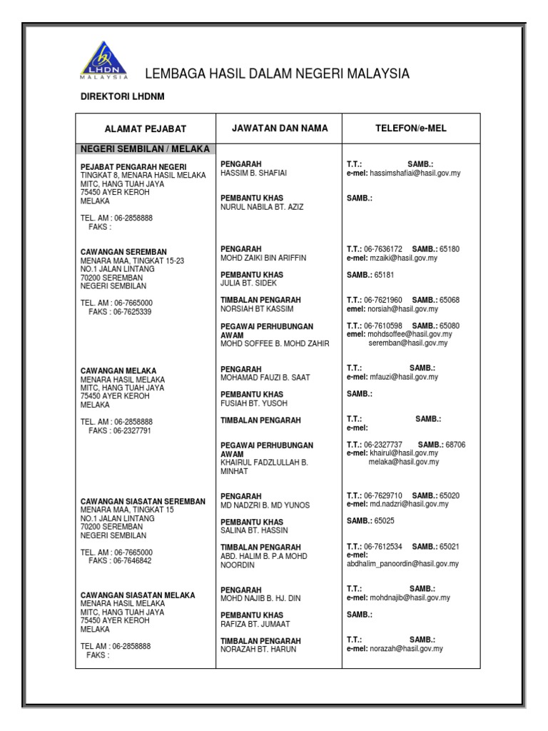 Sila rujuk www.hasil.gov.my untuk maklumat lanjut. Lembaga hasil dalam negeri (lhdn) inland revenue board (irb) malaysia blok 8a, kompleks bangunan kerajaan jalan duta 50600 kuala lumpur kuala lumpur w.p. Ii) for submission by hand you may submit the form at level. And address is persiaran rimba permai, selangor, malaysia lembaga hasil dalam negeri stands for inland board revenue of malaysia. I) for submission by post, please return to;