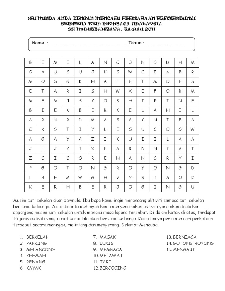 Cari Perkataan Tersembunyi Bahasa Melayu Sekolah Rendah : Ø digalakkan calon menulis pada gambar berkenaan.. Skip to main | skip to sidebar. Sebagai bahasa yang luas pemakaiannya, bahasa ini menjadi bahasa resmi di brunei, indonesia (sebagai bahasa indonesia). Ø bahasa melayu kertas 2 (012) dalam bentuk ujian subjektif. We provide version 1.0, the latest version that has been optimized for different devices. Bmm3103 pentaksiran bahasa melayu sekolah rendah.